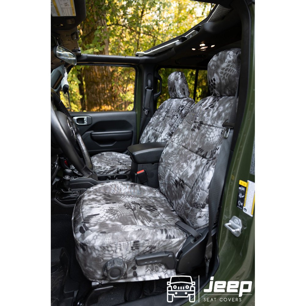 Kryptek Camouflage seat covers give your Jeep Gladiator a rugged outdoorsman look while offering tough, durable protection. Built to handle wear and tear, they’re even pet-friendly.